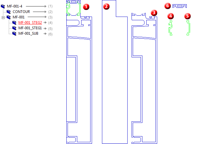- Wollen Sie die Konturdarstellung für Baureihenprofile nutzen, dann muss zusätzlich ein Teil mit dem Namen CONTOUR definiert sein, das die vereinfachte Kontur des gesamten Profils enthält.