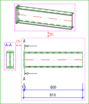 Durch Aktivieren dieser Checkbox lassen sich Stahlbauprofile in axonometrischen Ansichten verkürzt darstellen.