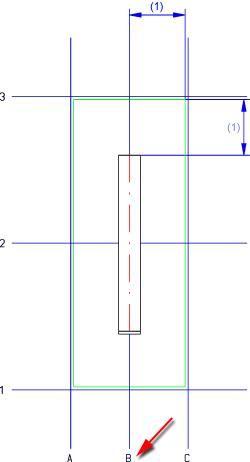 Zusätzlich können Sie die Suche nach Systemachsen begrenzen, indem Sie die Checkbox Suche begrenzen aktivieren und den Bereich bestimmen, in dem die Suche erfolgen soll. Der Wert bestimmt den Abstand (1) von der Profilachse bzw. vom Profilanfang/-ende. (Es wird vom Profilende aus nach außen die nächste Rasterachse gesucht.)