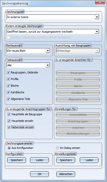 Die Einstellungen für die Zeichnungsableitung erfolgen über das Dialogfenster Zeichnungsableitung.