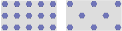 3 Reihen, 5 Spalten, links: ohne Versatz,