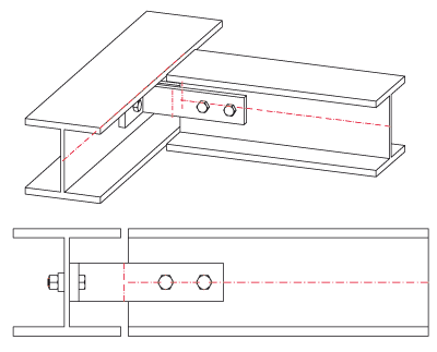 Diese Variante verbindet Profile mit einem gelenkigen Winkelanschluss. Die Verbindung erfolgt einseitig, das heißt, es werden zwei Profile miteinander verbunden. Da der Anschluss ohne Ausklinkung erfolgt, spricht man auch von Anschlüssen mit gestreckten Winkeln.