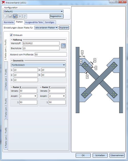 Die Konfiguration des Kreuzverbandes erfolgt über die Registerkarten des Dialogfensters.