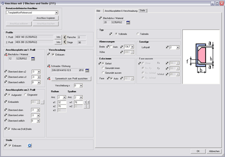 2. Das Dialogfenster Anschluss mit 2 Blechen und Steife (211) wird angezeigt.