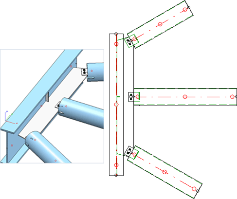 Mit dieser - auf einer Designvariante basierenden - Funktion lassen sich drei Rohre an ein Profil anschließen.