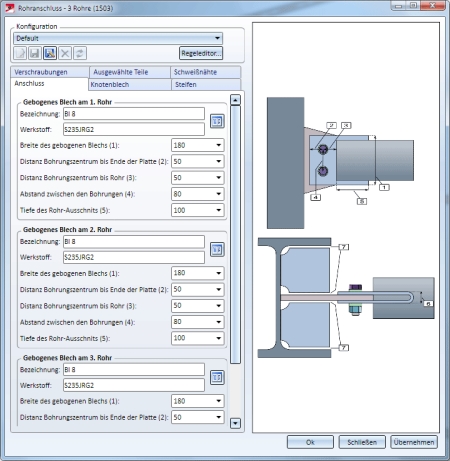 Andockfenster Bauwesen-Funktionen > Stahlbau > Anschlüsse > Stirnseite an Steg-/Flanschseite > Rohranschluss (1503)
