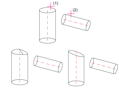 Beim Anschnitt mit Verlängern wird das anzuschneidende Profil dem Rohr angepasst. Beim Anschnitt ohne Verlängern wird nur das Stück des Profils, das am Teil anliegt bzw. es durchdringt, angeschnitten.