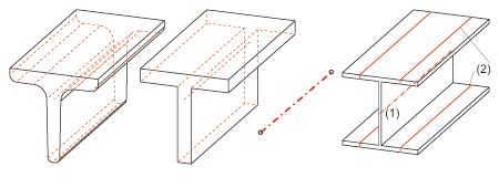 Stahlbauachsen und Anrisslinien werden als Hilfslinien bezeichnet. Diese Hilfslinien können Sie durch Anklicken der entsprechenden Checkboxen ein- und ausblenden. Das Gleiche gilt für die Darstellung von Achsenendpunkten und Profiltexten sowie für die Kontur von Baureihenprofilen.