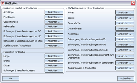 individuell festlegen, in welche Ansichten die Maße eingetragen werden sollen. Dazu klicken Sie auf die Schaltfläche Ansichten neben dem jeweiligen Eintrag und wählen dann durch Aktivierung/Deaktivierung der entsprechenden Checkboxen die gewünschten Ansichten aus.