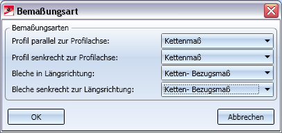 Hier legen Sie fest, welche Bemaßungsart in der Werkstattzeichnung verwendet werden soll. Möglich sind hier: