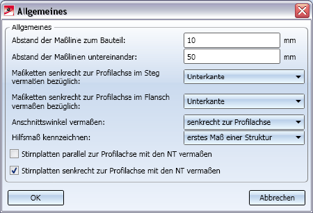 Stahlbau > Weitere Funktionen > Einst... > Einstellungen für Bemaßungen