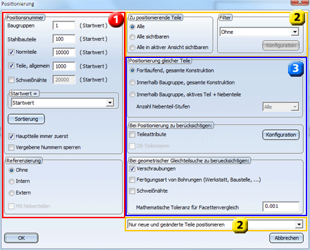 Einstellungen für die Positionierung von Gleichteilen und die Gleichteilsuche |