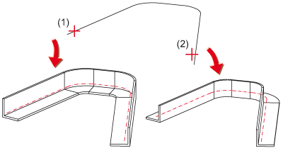 Verlegung eines L-Profils entlang eines Kantenzuges: (1) Identifizierung am Anfangspunkt, (2) Identifizierung am Endpunkt