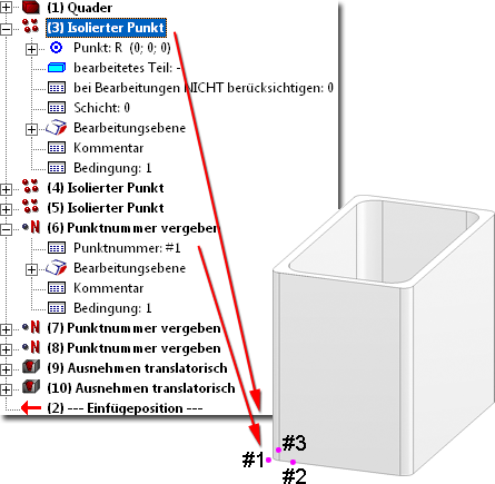 Um isolierte Punkte einzufügen, aktivieren Sie auf der Registerkarte 3D-Standard unter Tools die Funktion Punkte neu