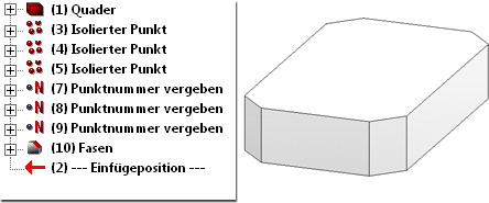 Abschließend werden die Quaderkanten gefast. Dazu aktivieren Sie die Funktion Fasen (3D)