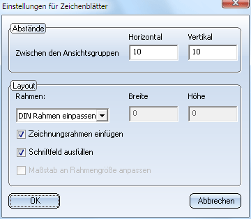 Darüber hinaus können Sie für DIN-Formate festlegen, dass automatisch ein entsprechender Zeichnungsrahmen eingefügt und das Schriftfeld ausgefüllt wird.