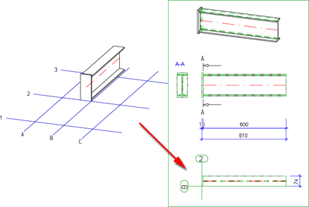 Durch Aktivieren dieser Checkbox lassen sich Stahlbauprofile in axonometrischen Ansichten verkürzt darstellen.