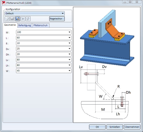 Mit den Designvarianten 1205 bis 1207 lassen sich weitere Pfettenanschlüsse erzeugen (SP1):