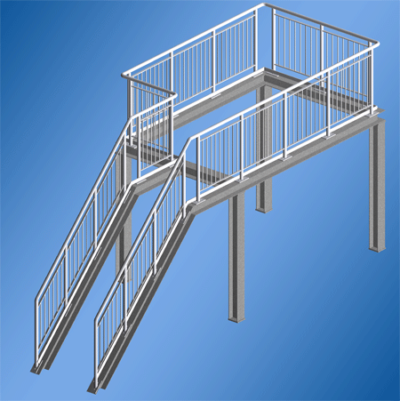 Das Modul HiCAD Stahlbau-Package enthält jetzt auch die Treppen-Funktionen. Da das HiCAD Stahlbau Package auf 750 Teile beschränkt ist, ist auch die Größe von Treppen, die man einbauen kann, begrenzt. (SP1)