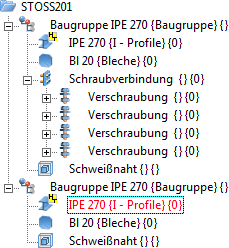 - Platten, Vouten- und Flanschbleche werden mit dem anzuschließenden Profil zu einer Baugruppe zusammengefasst, alle anderen Komponenten mit dem Profil, an das angeschlossen wird.