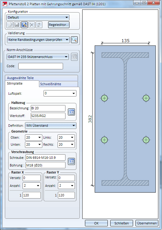 Anschlüsse + Varianten (3D-STB) • Dialogfenster für Anschlüsse - Typ I (3D-STB) • Das Katalogsystem für Anschlüsse + Varianten (3D-STB)