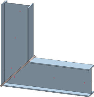 Diese Funktion verbindet zwei Profile durch eine geschweißte Platte, die sowohl bündig abschließen als auch oben, unten oder seitlich überstehen kann. Falls erforderlich werden die Profile automatisch verkürzt, verlängert und/oder auf Gehrung geschnitten.