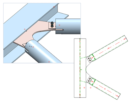 Mit dieser -auf einer Designvariante basierenden - Funktion lassen sich zwei Rohre an ein Profil anschließen.