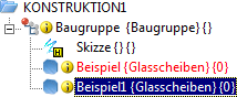 Das Glas wird als Hauptteil mit der Sachnummer (Bezeichnung) GLAS nn in die Teilestruktur eingefügt, wobei nn die Glasdicke ist, die durch die in der 2D-Figur vergebenen Glaspunkte definiert ist.