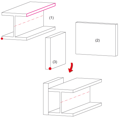 Die Stirnplatte wird automatisch am gewählten Profilende eingebaut. Der Schwerpunkt der Anschlussfläche der Platte liegt im Endpunkt der Profilachse.