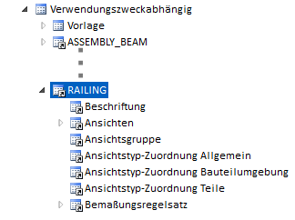 Die Konfigurationen sind ebenfalls im Konfigurationsmanagement definiert und zwar unter ..> Automatische Zeichnungsableitung > Verwendungszweckabhängig, z.B. die Konfiguration RAILING.
