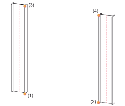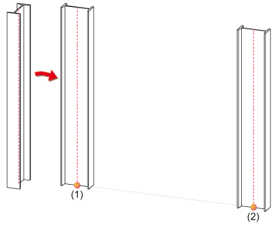 1. Profil gedreht, (1) Bezugspunkt für 2. Profil - Rechts: 2.Profil direkt