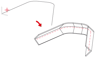 Hier bauen Sie Profile entlang eines 3D-Kantenzuges ein. Die Kanten des Kantenzuges werden mit Profilen des gewählten Typs belegt. Dabei werden die einzelnen Profile in Abhängigkeit vom Kantenzug auf Gehrung geschnitten oder gekrümmt. Beim Aufruf der Funktion muss der Kantenzug in der Konstruktion vorhanden sein.