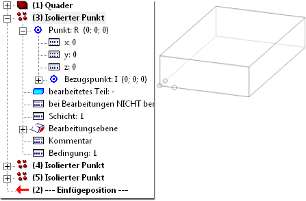 Um isolierte Punkte einzufügen, aktivieren Sie auf der Registerkarte 3D-Standard unter Tools die Funktion Punkte neu