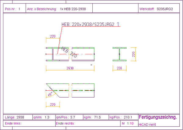 > Einstellungen >Grundeinstellungen > Stahlbau > Werkstattzeichnung (Einzelteilzeichnung) berücksichtigt.