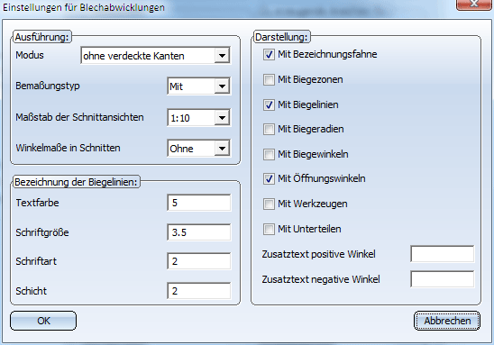 In diesem Dialogfenster legen Sie die Einstellung für Abwicklung von Kantblechen fest.