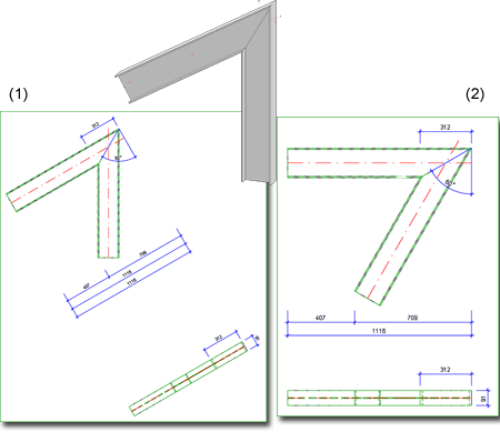 Auch Geländersegmente können in Fertigungs- oder Einbaulage dargestellt werden. Die Einbaulage ist sinnvoll für steigende oder fallende Geländer, die Fertigungslage für Geländer in X-Richtung, d.h. mit horizontalem Handlauf.