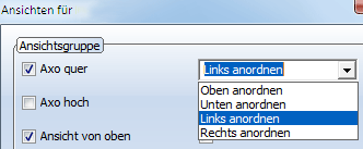Die Erstellung von Ansichtsgruppen bei der Zeichnungsableitung (Werkstattzeichnung) kann in Abhängigkeit vom Verwendungszweck aktiviert/deaktiviert werden. Die Einstellung erfolgt im Konfigurationsmanagement (isdconfigeditor.exe) unter Automatische Zeichnungsableitung > Verwendungszweckabhängig > name, wobei name der Name des jeweiligen Verwendungszwecks ist, z.B. BEAM (SP2)