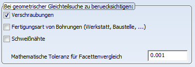 Bei der geometrischen Gleichteilerkennung alle Teile berücksichtigen (0 = nein, 1 = ja)