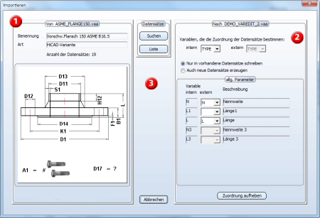 von dem Datenimport betroffen sein soll, beispielsweise Flansche