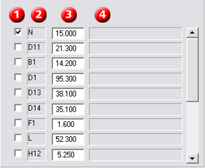 Das Eingabefeld oben im Tabellenfenster enthält die Typbenennung des Datensatzes, zu dem die Tabelleneinträge gehören. Die Tabelle besteht aus vier Spalten.