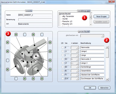 Die rechte Liste enthält die Variablen, die der vorher markierten Variablengruppe zugeordnet sind. Die linke Liste besteht aus allen anderen Variablen des Bauteils.