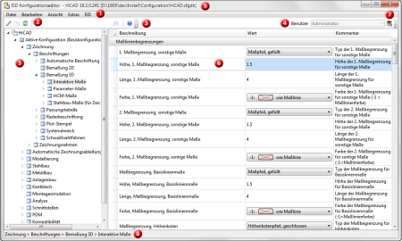 Sie starten den Konfigurationseditor außerhalb von HiCAD, indem Sie die Datei ISDCONFIGEDITOR.EXE im EXE-Verzeichnis von HiCAD ausführen. Alternativ haben Sie auch die Möglichkeite, den Editor direkt aus HiCAD heraus zu starten. Dazu verwenden Sie die Funktion Konfiguration im Menü Einstellungen.