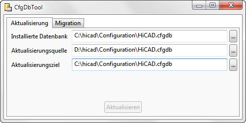 Hier steht der Pfad der Konfigurationsdatenbank, die aktualisiert werden soll, d.h. die Konfigurationsdatenbank Ihrer bisherigen HiCAD-Version 2011/2012. |