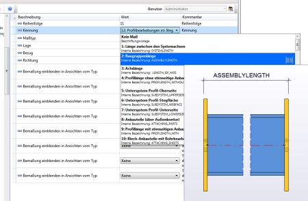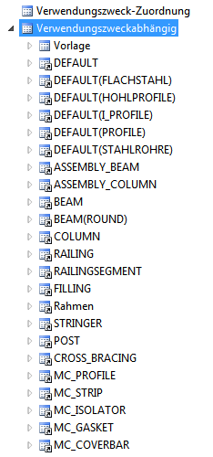 Für den Stahl- und Metallbau – insbesondere in Verbindung mit dem neuen Geländerkonfigurator – stehen zahlreiche neue Verwendungsarten zur Verfügung. Diese sind im Katalog Werksnormen > Verwendungsarten > Stahlbau bzw. Metallbau definiert. Zu den Verwendungsarten sind im Konfigurationsmanagement entsprechende Verwendungszeck-Konfigurationen für die Zeichnungsableitung vordefiniert.