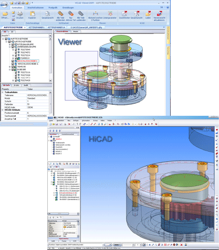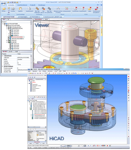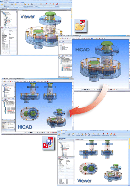 Ist die aktuelle Datei eine HiCAD-Konstruktion (.SZA) , dann können Sie diese aufgrund der Mehrfenstertechnik parallel in HiCAD bearbeiten und nach Änderungen die Viewer-Darstellung automatisch aktualisieren.