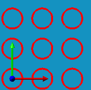Die Lochungen werden in einem quadratischen Raster verlegt (der Winkel zwischen X- und Y-Achse der Verlegung beträgt 90°).