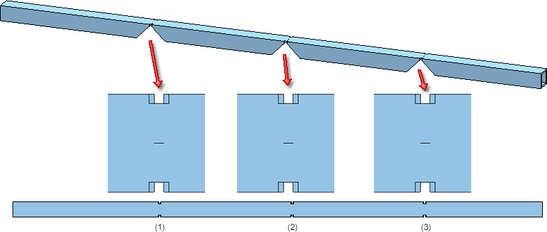 Das Verbiegen erfolgt in drei Schritten und zwar in der abgebildeten Reihenfolge: