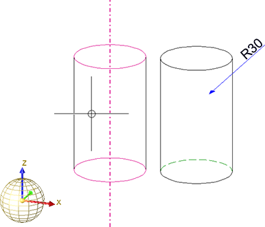 Mit den Funktionen unter Durchmessermaß und Radienmaß erzeugen Sie Durchmesser- bzw. Radienbemaßungen an einem Kreis, einer Kugel, einem Zylinder oder einem Torus. Bestimmen Sie das gewünschte Objekt durch Auswahl einer Kante oder Fläche - je nach Einstellungen im Dialogfenster Selektion der Elementtypen.
