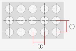Dieser Wert bestimmt den Abstand der Bohrungen zueinander. Bei Geraden Reihen, Versetzten Reihen und Diagonal versetzten Reihen kann nur ein Abstand angegeben werden. Bei Frei versetzten Reihen müssen je ein Abstand für die X- und die Y-Richtung angegeben werden. |