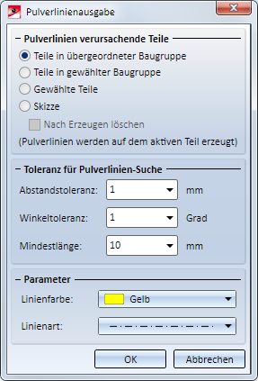 Nach dem Aufruf der Funktion Pulverlinien wird das abgebildete Dialogfenster angezeigt: